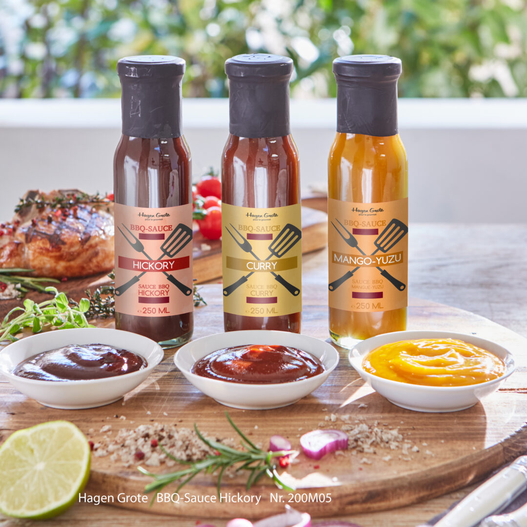Wunderbar zu feinen Fleisch-Spezialitäten aus dem Oberhitzegrill harmonieren unsere aromatischen, zuckerreduzierten BBQ-Saucen: Probieren Sie fruchtige Curry Sauce gewürzt mit indischem Garam Masala, exotische Mango-Yuzu Sauce oder Hickory Sauce mit Thai-Curry und intensivem Raucharoma.