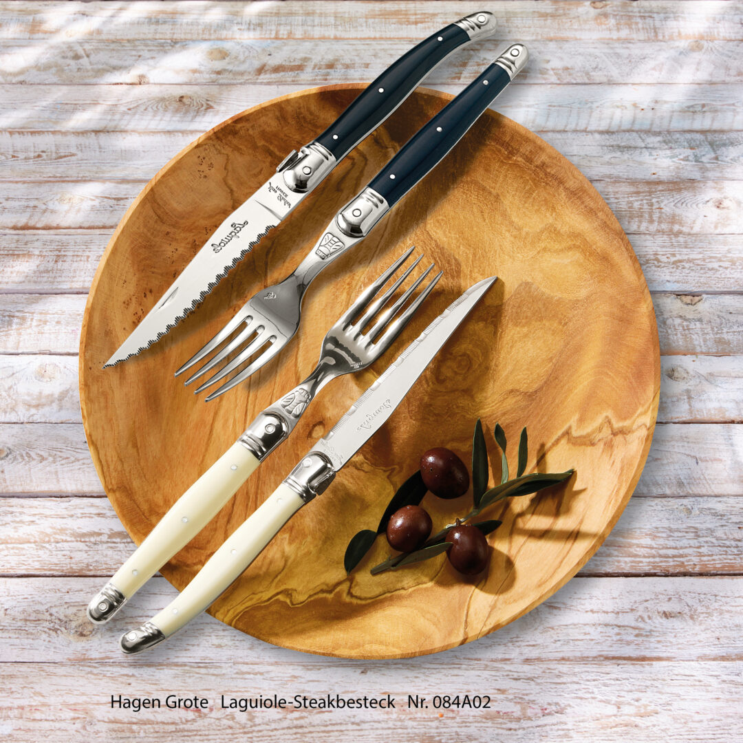 Mit unserem klassischen Laguiole Steakbesteck genießen Sie aromatisches Steak vom Oberhitzegrill stilecht. Das beliebte Design mit den geschwungenen Linien und der Biene als Markenzeichen entwarf 1829 der französische Kunstschmied Jean Calmel. Aufgrund des hochwertigen Sägeschliffs schneiden Sie mit diesen Steakmessern präzise und ohne Kraftaufwand.