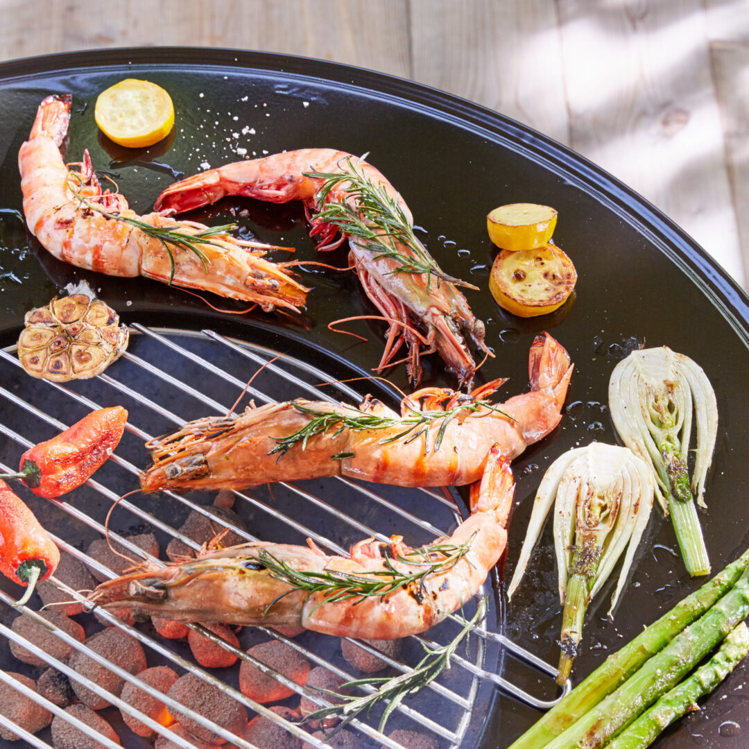 Ein besonderes Highlight vom Hochtemperaturgrill sind etwa Riesengarnelen aus Wildfang. Mit bis zu 30 cm Größe und einem Gewicht von je etwa 250 g zählen die XL-Garnelen zu den beliebtesten Delikatessen aus dem Meer. Wild gefangen im indischen Ozean und sofort an Bord des Fangschiffs schockgefrostet begeistern sie mit ihrem hocharomatischen Geschmack und wunderbar zartem Fleisch. Ihr volles Meeres-Aroma entfaltet im Hochtemperaturgrill auch die Karibische Languste aus Wildfang. Butterweich und delikat ist ihr feines Fleisch kulinarisch anspruchsvoller als das eines Hummers.
