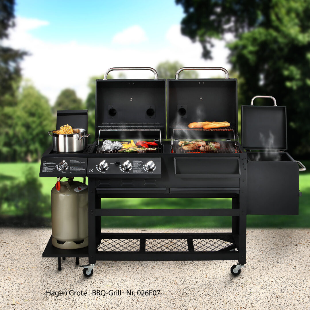 Als gasbetriebene Variante ist der 2-Brenner Hochleistungs-Gasgrill mit extra Steak Zone eine hervorragende Wahl. Die professionelle BBQ-Station mit 2 leistungsstarken Edelstahlbrennern und extra heißer Steakzone ist mit ihrem platzsparenden Design auch für Balkon und Terrasse ideal geeignet. Das Gerät wird sämtlichen Ansprüchen professioneller „Grillmeister“ gerecht: Die beiden einzeln regulierbaren 3,5 kW Edelstahl-Hochleistungsbrenner sorgen für optimale Temperaturen, während die emaillierte Stahlplatte eine gleichmäßige Verteilung der Hitze gewährleistet. Bis zu 800 °C erreicht das Gerät in der speziellen Steak Zone, die sich in der einen Seitenablage befindet. Die Außenkochstelle auf der anderen Seite kann zur Zubereitung von Beilagen und Saucen genutzt werden. Für einen sicheren Betrieb sorgt der Gasdruckregler mit integrierter Schlauchbruchsicherung.