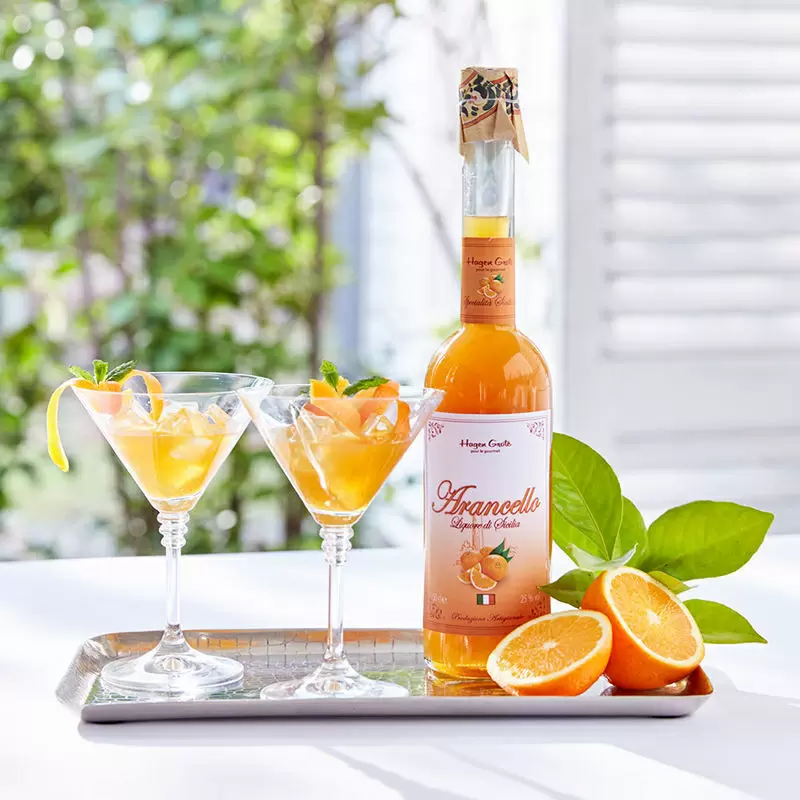 Die aromatischsten sizilianischen Orangengedeihen auf den fruchtbaren Vulkanböden des Ätna. In handwerklicher Fertigung entsteht daraus nach überliefertem Rezept und altem Herstellungsverfahren dieser aromatische Orangenlikör, auch Arancello genannt.