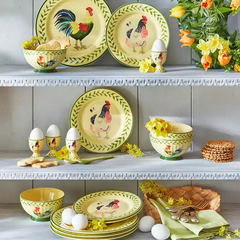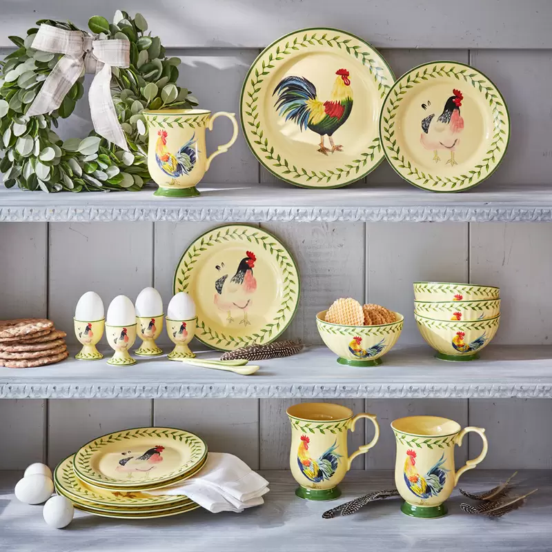 Der Maler John Hopkins aus Dewsbury in West Yorkshire porträtierte einst den stolzen Hahn eines Nachbarn. Von dieser berühmten Vorlage inspiriert, fertigen wir unser hochwertiges Frühstücksgeschirr exklusiv für Sie.