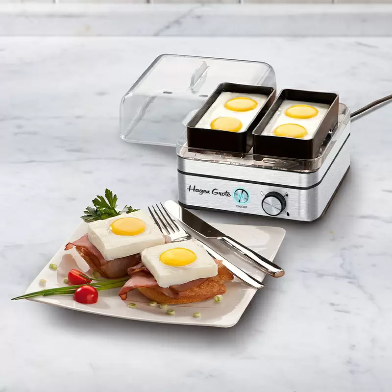 Weich, wachsweich oder lieber hart? Bis zu 8 wunderbare Frühstückseier bereitet dieser nach den hohen Hagen Grote Standards an Design, Qualität und Funktionalität gefertigte Eierkocher. Ein besonderer Genuss sind pochierte Eier.