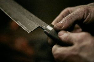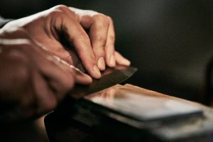 Bevor das Messer in die Hände der Köche gelangt, erfährt es eine aufwändige Bearbeitung: Zunächst wird das Messer von Hand an einem Korundstein geschliffen. Dann wird es ebenfalls von Hand aufwändig poliert. Durch die Politur wird die Oberfläche verdichtet, sie ist weniger offenporig und dadurch noch weniger anfällig für Rost.