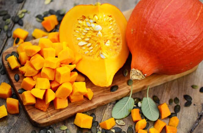 Kürbisse sind kalorienarm und gut bekömmlich. Die Winterkürbisse enthalten viel Betacarotin, Vitamin C und Mineralien wie Eisen und Magnesium. Das enthaltene Kalium wirkt entwässernd.