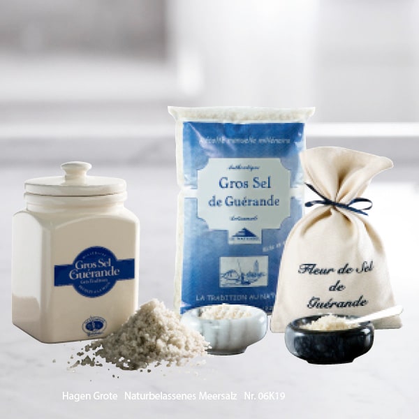 Meersalz entsteht durch die älteste Form der Salzgewinnung beim Verdunsten von Meerwasser in flachen Becken. In Handarbeit wird es von der Wasseroberfläche abgeschöpft und getrocknet. So wird es bis heute in den Salzgärten der Bretagne, in der Camargue in Aigues-Mortes, an der portugiesischen Algarve oder in Ses Salines auf Mallorca gewonnen. Das grobe, graue Salz ist eine Rarität. Seine oberste Schicht, La Fleur de Sel, die Blume des Salzes genannt, ist im Gegensatz zum üblichen Steinsalz reich an Spurenelementen, Mineralien und Aromen. Mit seiner knusprigen Struktur ist es ideal zum finalen Würzten beim Anrichten und Servieren.