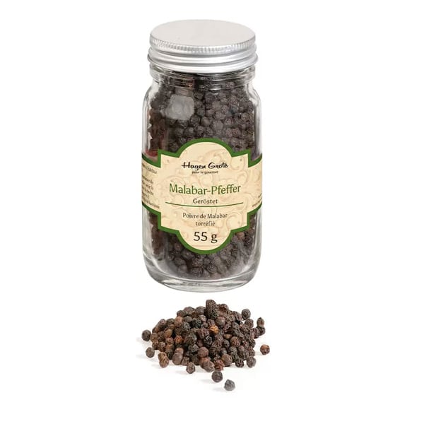 Gerösteter Malabar Pfeffer ist traditionell die Spitzensorte der feinen Küche. Seine ausgeprägt fruchtigen Aromen und intensiver Duft entstehen durch mildes Rösten nach der Ernte. Seine fruchtige Würzkraft passt bestens zu feinen dunklen Saucen, Schmorgerichten, zartem Gemüse, aber auch zu hellem Fleisch, Fisch und Meeresfrüchten. Sensationell sind frische Erdbeeren mit altem Aceto Balsamico und einem Hauch frisch gemahlenem Malabar Pfeffer.