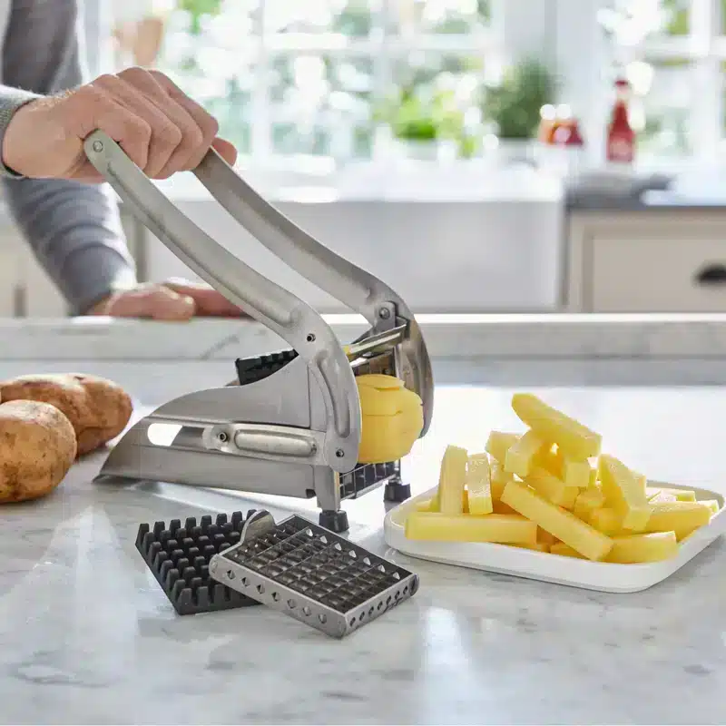 Auf die große Schaufel passen zum sicheren Wenden ganze Pfannkuchen, große Fischstücke oder viele Bratkartoffeln. Die abgeflachte Vorderkante teilt Aufläufe, gleitet schonend unter zartes Gemüse, schaufelt viele Pommes gleichzeitig vom Backblech.
