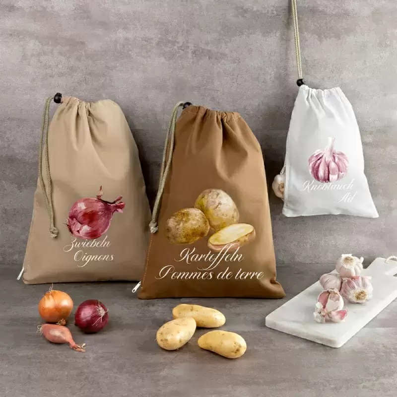 Außerdem mag es die Kartoffel schön luftig. Ideale Aufbewahrungsmittel sind daher Beutel aus Leinen oder Jute. Die ideale Lagertemperatur liegt bei 8 bis 12 °C. Je wärmer die Umgebung, desto schneller keimen die Kartoffeln und und trocknen aus. Im Kühlschrank sollten sie aber auch nicht aufbewahrt werden, da bei zu viel Kälte die Stärke in Zucker umgewandelt wird und den Geschmack verändert. Und noch eines: Halten Sie die Kartoffeln möglichst von Obst fern. Dieses produziert das Gas Ethylen, das die Kartoffeln schneller reifen und keimen lässt. Dem Genuss tut das Keinem übrigens keinen Abbruch. Schneiden Sie einfach keimenden Stellen großzügig ab. Einmal gewaschen sollten die Kartoffeln nicht mehr gelagert werden.