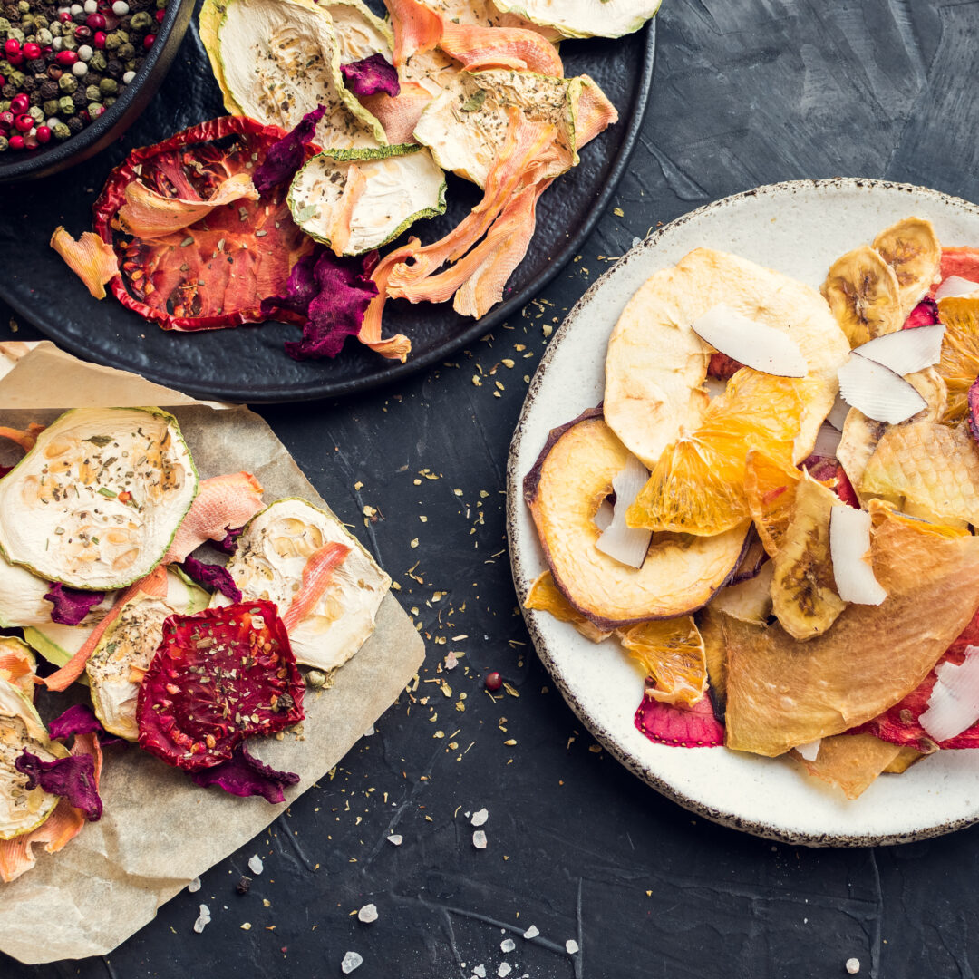 Sind die gedörrten Nahrungsmittel fertig, können Sie sofort verzehrt werden. Trockenobst und Gemüsechips eignen sich perfekt als leckerer Snack. Verschiedene Gerichte, wie zum Beispiel Suppen, Saucen sowie Risotti und Pastagerichte, profitieren von der Beigabe aromatischen Dörrguts. Trocken oder zuvor eingeweicht verfeinern etwa Zwiebeln, Zucchini oder Pilze den Geschmack vielfältiger Speisen. Getrocknetes Obst entfaltet seine Aromen hingegen bestens in Müslis und Backwaren.