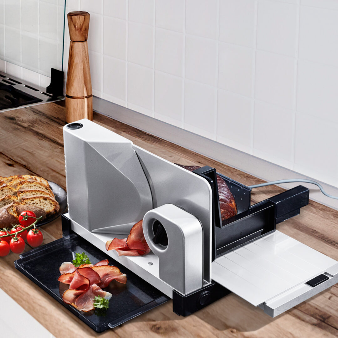 Leistungsstarke Schneidemaschine: Schneidet hauchdünnes Carpaccio oder gleichmäßige Brotscheiben