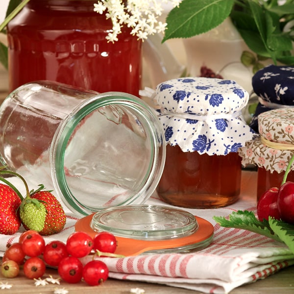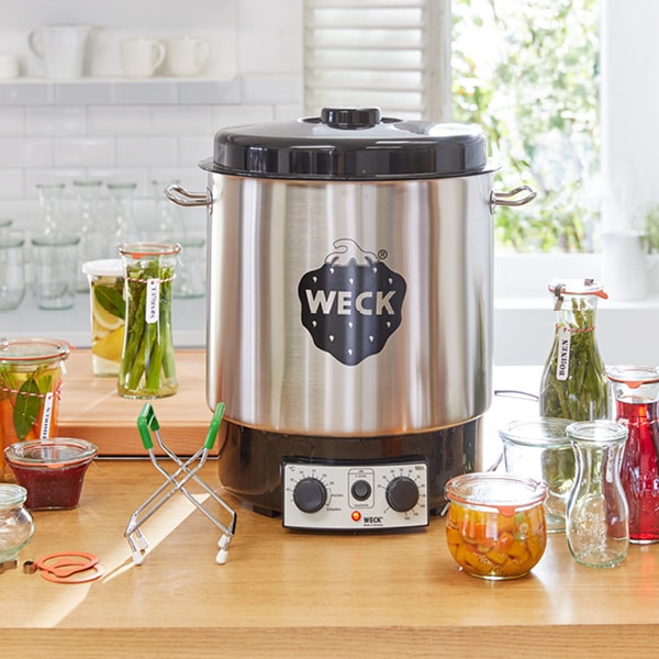 Die wohl beste Wahl zum Einkochen sind Weck Einkochgläser. Bereits seit 1900 stellt das Traditionsunternehmen die hochwertigen stoß- und kratzfesten Gläser her. Ihr hygienischer Glasdeckel mit abnehmbarer Gummidichtung, der mithilfe von Metallklammern verschlossen wird, sorgt für die sichere und luftdichte Konservierung des Inhalts. Mit ihrem attraktiven Prägedruck eignen sich die spülmaschinenfesten Gläser wunderbar auch zum Verschenken Ihrer selbstgemachten Delikatessen.