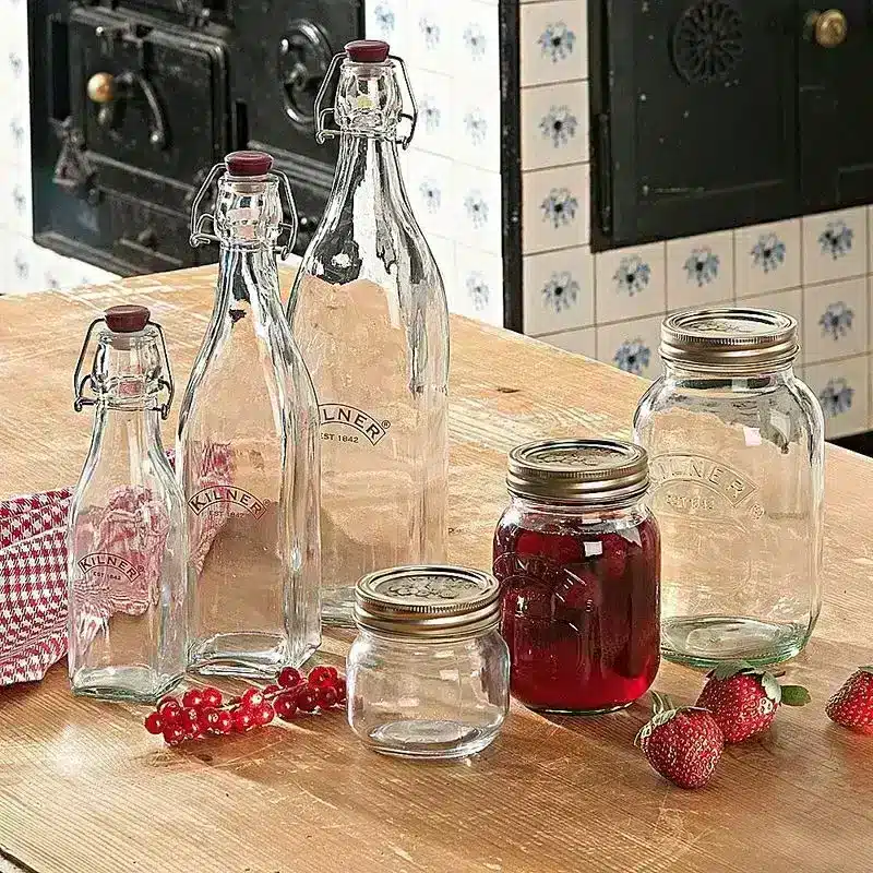 Neben vielen praktischen Küchenutensilien gehören auch praktische Einmachgläser des Herstellers Kilner zu unserem Angebot. Diese erlauben Ihnen optimals Einkochen dank der perfekten Deckeltechnik. John Kilner & Co erfand diese perfekten Einmachgläser bereits im Jahre 1842. Seitdem haben sie ihre hervorragende Eignung beim Kochen tausendfach unter Beweis gestellt. Die hohe Glasqualität und Präzision der Öffnungen sind entscheidend für den Erfolg der Vakuumierung. Noch wichtiger ist allerdings die Qualität des 2-teiligen Deckels. Er besteht aus dem Gewindering, der das mit Weichgummi beschichtete, bis zu 10-mal wieder-verwendbare Vakuum-Deckelsiegel auf der Öffnung fixiert. Zudem sind die Gläser mit einem schönen Logo-Prägedruck versehen, was die attraktiven Bügelverschluss-Flaschen und -Gläser noch dazu zum Hingucker macht. I Weitere Ideen und Produkte finden Sie in unserem Onlineshop – hier klicken I
