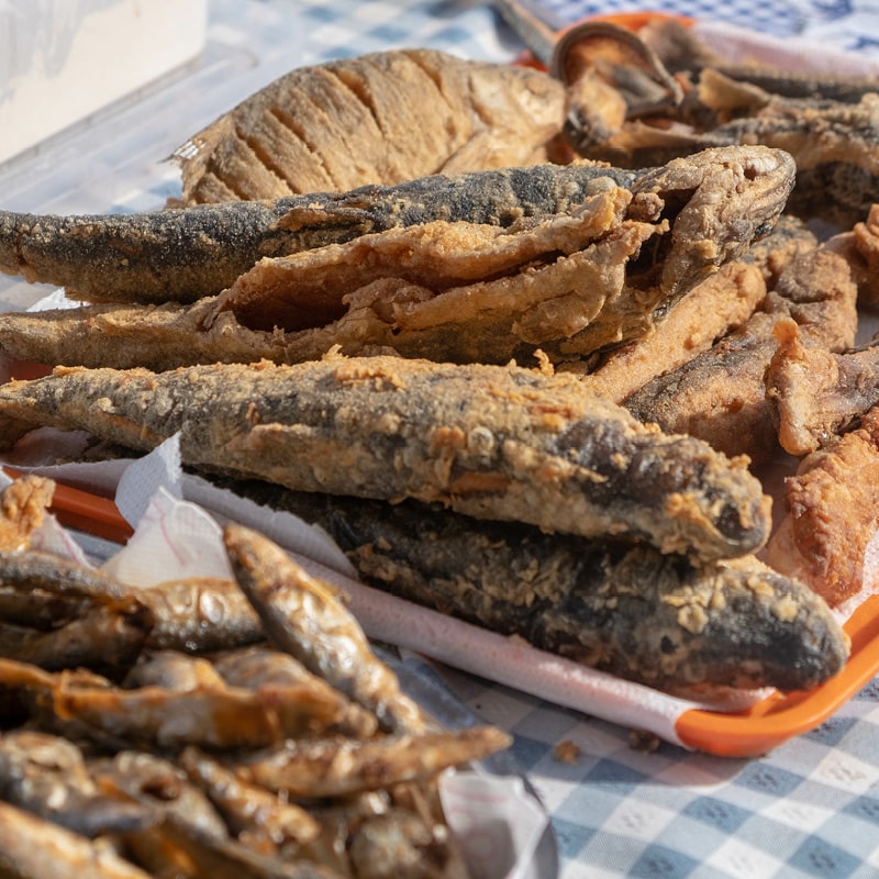 Die beliebten Fischstäbchen oder die in England allgegenwärtigen Fish’n Chips aus panierten Fischfilet Stücken vom Alaska Seelachs, Kabeljau, Seehecht oder Schellfisch gehören zu den bekannteste Fischgerichten dieser vielseitigen Zubereitungstechnik. Gewaschene, mit Küchenpapier trocken getupfte Fischfilet-Stücke werden gesalzen in Mehl gewendet, überschüssiges Mehl abklopfen, durch verschlagenes Ei ziehen und in Fett ausbacken oder auch in der Öl- oder Heißluftfritteusen frittiert. Alternativ zur Panade lassen sich die Fisch-Stückchen vor dem Garen mit Teig umhüllen. Dafür einen Ausbackteig wie folgt herstellen: 70 ml helles Bier, 80 g Mehl, ½ TL Salz, 1 Ei, 2 EL Öl verrühren und 30 Minuten ruhen lassen. Fischfilet Stücke durch den Teig ziehen und abtropfen lassen, damit die Hülle nicht zu dick wird. In einem Topf, der 3-4 cm hoch mit Öl gefüllt ist, in etwa 4 Minuten goldgelb ausbacken. Ebenso geht das bei 180 °C in einer Fritteuse. Dabei ohne Frittier Korb arbeiten, an dem der Ausbackteig festkleben und die Umhüllung der Fisch Stückchen beim Entnehmen Schaden nehmen könnte.