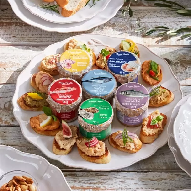 Frische Felsenaustern und saisonalen Mittelmeer-Fisch komponieren wir in unserer Genuss-Manufaktur mit besten Zutaten zu einer einzigartigen Fischcreme-Delikatesse. Ihren exquisiten Geschmack verdankt sie der Spitzenqualität frisch verarbeiteter Produkte, dem hohen Fisch- und Meeresfrüchteanteil von mehr als 50 % und der sorgfältigen Zubereitung nach einem traditionellen Rezept. Echte französische Butter, Sahne, ein Schuss Weißwein sowie Zwiebeln, Lauch und Kurkuma sorgen dabei für die richtige Raffinesse.