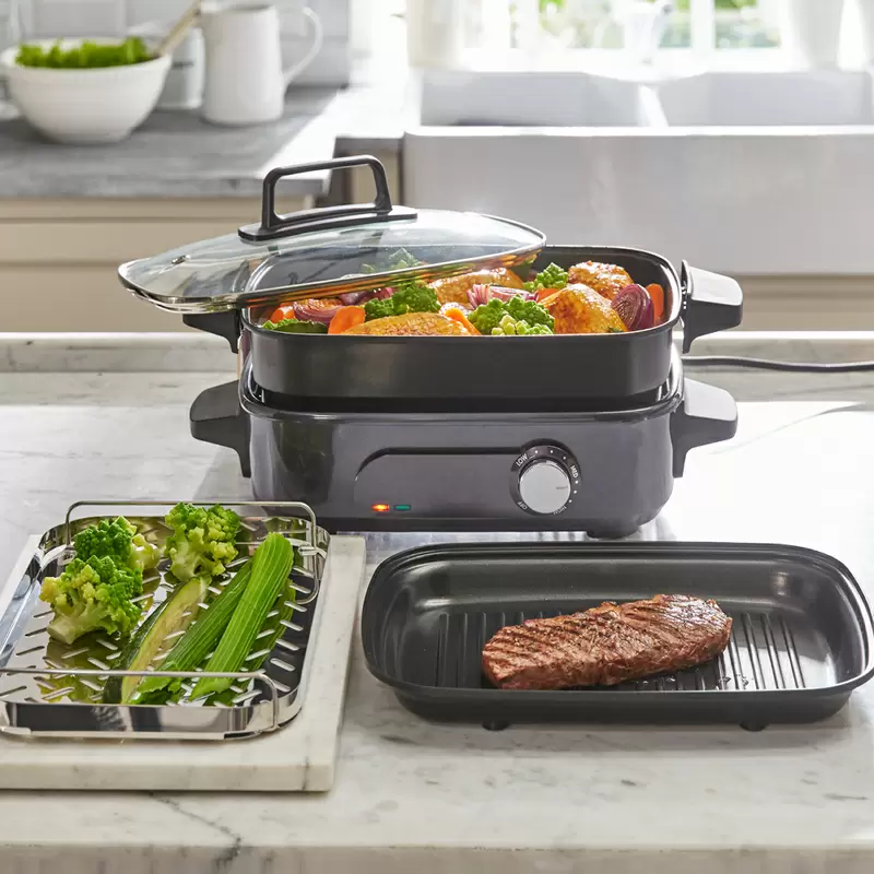 Die Kombination aus Grill, Kochfeld, Dampfgarer und Pfanne ermöglicht die schnelle Zubereitung Ihrer Mahlzeiten. Perfekt für alle Arten des Kochens vom scharfen Anbraten bis zum sanften Dünsten und Garen.