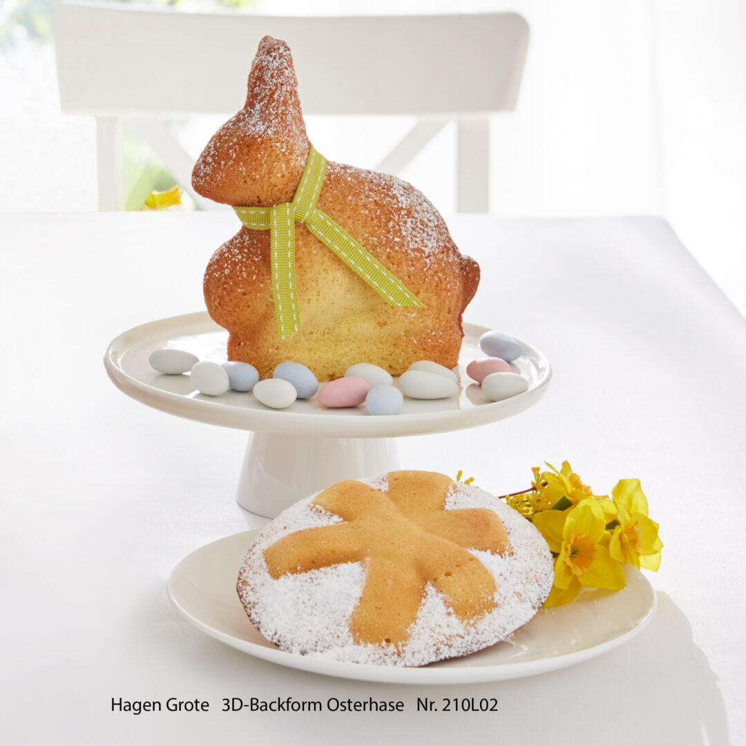 Mit unseren hochwertigen Keramik-Backformen gelingt Ihnen der frühlingshafte Kuchen hervorragend. Durch die hohe Wärmeleitfähigkeit gelingt der feine Kuchen außen goldbraun, innen wunderbar saftig. Weitere dekorative Gebildbrote backen Sie mit unserer Osterhasen-Backform sowie der Osterei-Backform. Beide Formen sind aus Karbonstahl gefertigt und absolut auslaufsicher.