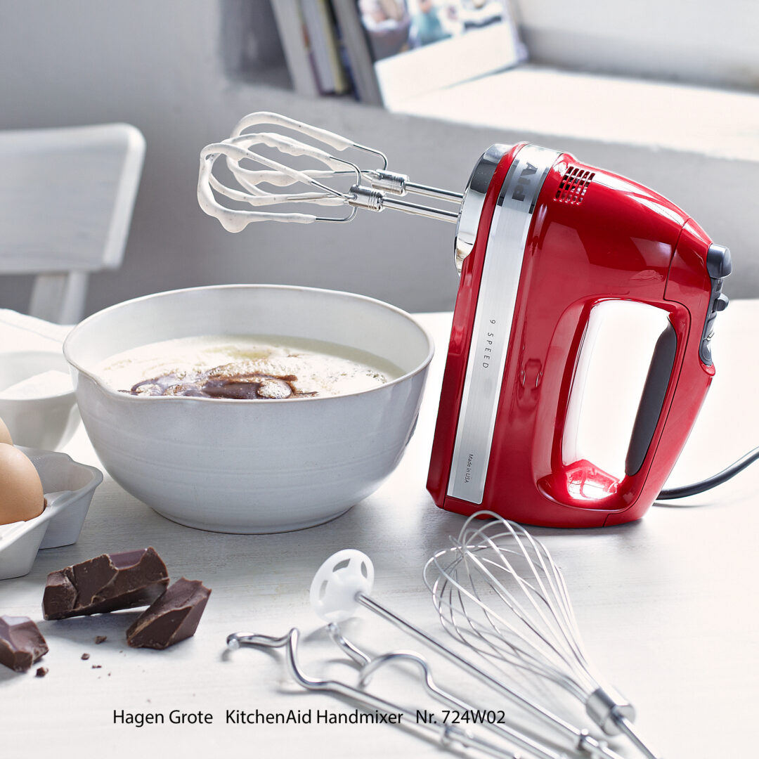 Um Gebäcke aus Rührmasse herzustellen, ist keine komplizierte Ausrüstung notwendig. Zu den wichtigsten Basics zählen ein gutes Handrührgerät oder eine Küchenmaschine. Besonders kraftvoll ist der KitchenAid Handmixer. Mit Kraft und Präzision sorgt er bei 9 einstellbaren Geschwindigkeitsstufen für die perfekte Konsistenz.
