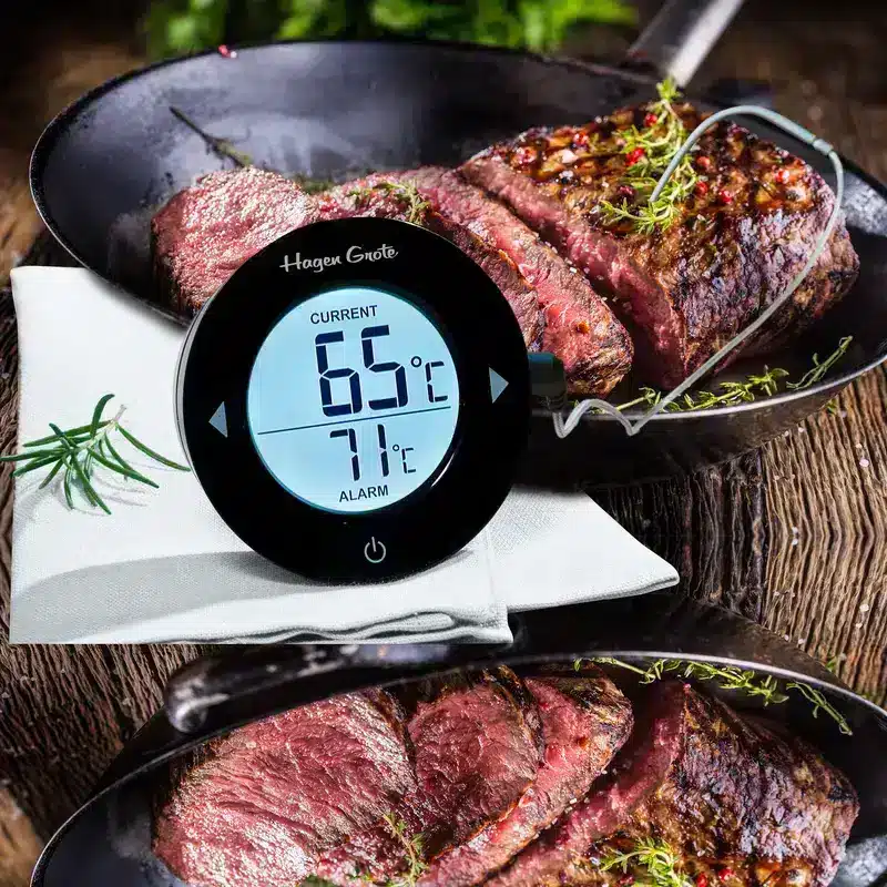Das bis 380 °C hitzebeständige, 1 m lange Kabel überträgt gemessene Kerntemperaturen exakt vom Ofen oder Grill auf das Großdisplay. Dank seiner Größe und Beleuchtung ist es auch aus der Ferne bestens ablesbar.
