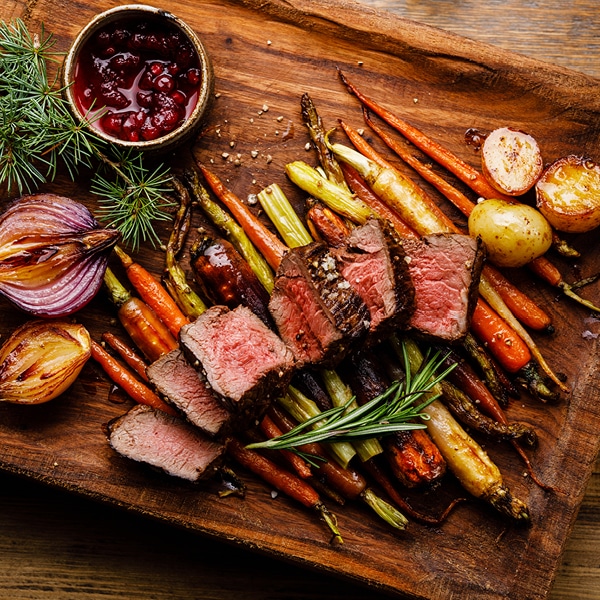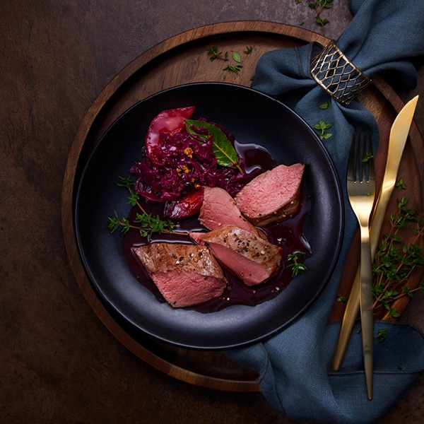 Gemüse sollte hingegen über etwa mehr Eigengeschmack verfügen, um neben dem Wild nicht zu verblassen. Eine gute Wahl sind etwa Rot- oder Rosenkohl, Kürbis, Pilze oder Sellerie. Auch Maronen harmonieren wunderbar mit Wild. Besonders gut zur Geltung kommt das hocharomatische Fleisch auch in Kombination von Obst. Hier eignen sich insbesondere Heimisches wie Apfel, Birne oder Pflaumen, Beeren wie Preiselbeeren und Cranberries, aber auch exotische Früchte wie etwa Mango.