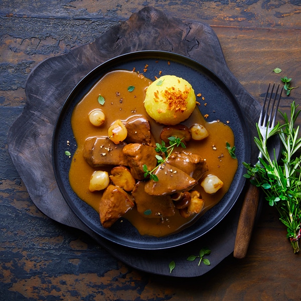Aus besten frischen Zutaten werden diese Klassiker der Gourmet-Küche in unserer Genussmanufaktur für die bequeme und schnelle Zubereitung zu Hause vorbereitet. Fertig vorgegart werden die Gerichte nur kurz erwärmt und sofort serviert.