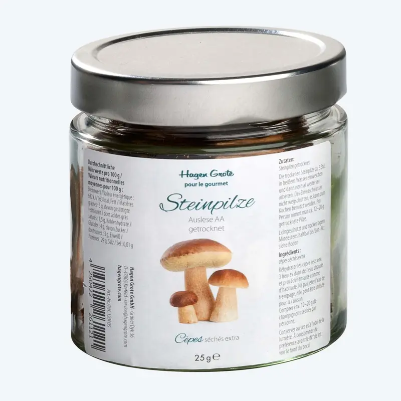 Aroma und Geschmack getrockneter Pilze sind ausgeprägter als bei frischen Pilzen. Pro Person genügen 10 g getrocknete Pilze, die durch Rehydrierung (Wässern) bis zu 150 g ergeben.