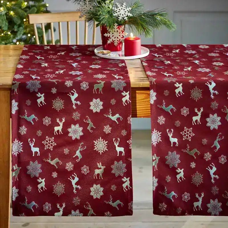 Jaquard-Tischläufer mit winterlichem Hirschmotiv