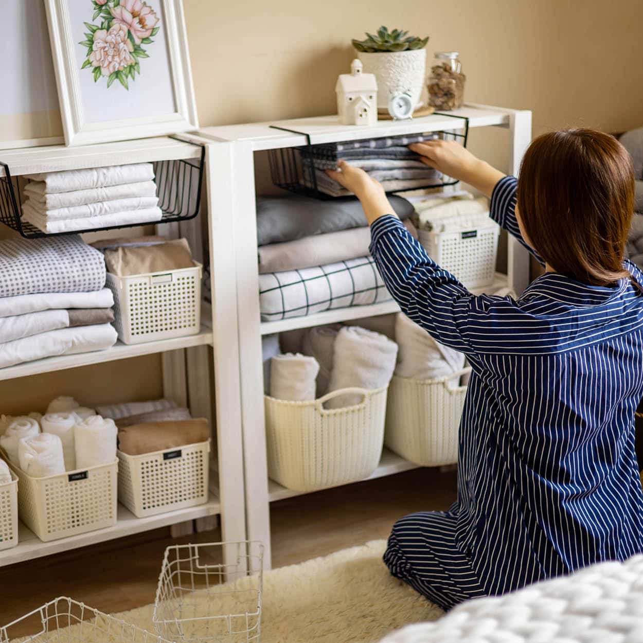 Vor der gründlichen Reinigung steht zuerst das Aufräumen, denn nur so hat man Platz für die eigentliche Arbeit. Zugleich bietet sich so die Gelegenheit zum Aussortieren von nicht mehr Benötigtem, wie etwa alten Zeitschriften, unliebsame Geschenke oder ungetragene Kleidung. Beim anschließenden Putzen lautet die Grundregel immer „von oben nach unten“, sonst macht man sich doppelte Arbeit. Also erst Schränke und Regale von innen und außen reinigen, dann Fliesen und Arbeitsflächen und erst zum Schluss den Boden.