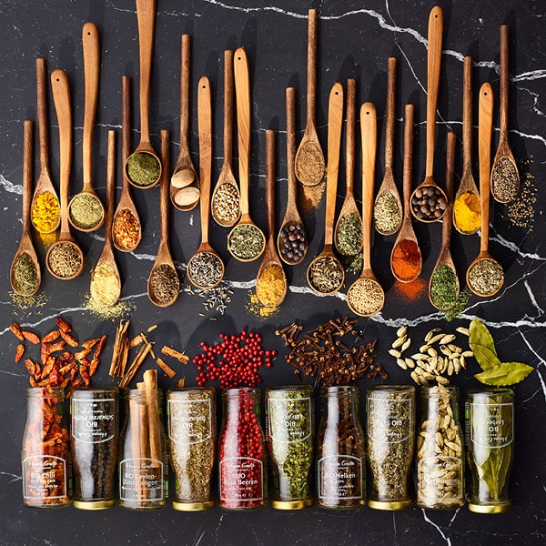 Oft werden Gewürze und Kräuter gleichgesetzt, werden doch beide aus Pflanzen gewonnen und zum Verfeinern von Speisen verwendet. Und doch gibt es feine Unterschiede: Kräuter sind Blätter von frischen oder getrockneten Pflanzen. Für Gewürze hingegen werden andere aromatische Pflanzenteile wie Blüten, Knospen, Wurzeln oder Beeren verarbeitet.