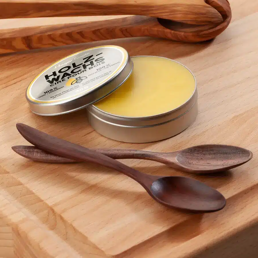 Mit rein natürlichen Inhaltsstoffen, frei von chemischen Zusätzen, ist Holzwachs die ideale Pflege von jeglichem Holz mit Lebensmittelkontakt. Die Kombination aus reinem Leinöl und Bienenwachs in Imkerqualität bringt ursprüngliche Farbschönheit und Holzmaserungen wieder zur Geltung.