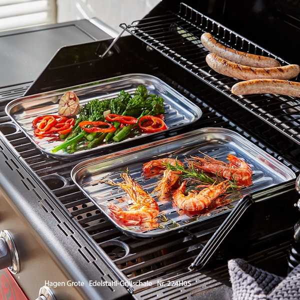 Unbedingt zu beachten ist beim Grillen mit Holzkohle, dass kein überschüssiges Öl, etwa von mariniertem Fleisch, in die Glut tropft. Andernfalls können Stichflammen und schadstoffhaltiger Rauch entstehen. Ideal um dies zu vermeiden ist die Verwendung einer Edelstahl-Grillschale. Im Gegensatz zu den üblichen Einmal-Produkten aus Aluminium sind die robusten, spülmaschinenfesten Schalen immer wieder verwendbar und somit eine zeitgemäße, nachhaltige Alternative. Sicher und sauber grillen Sie darauf jegliches Grillgut, ohne, das Fett oder austretende Flüssigkeit auf die Kohle tropfen.