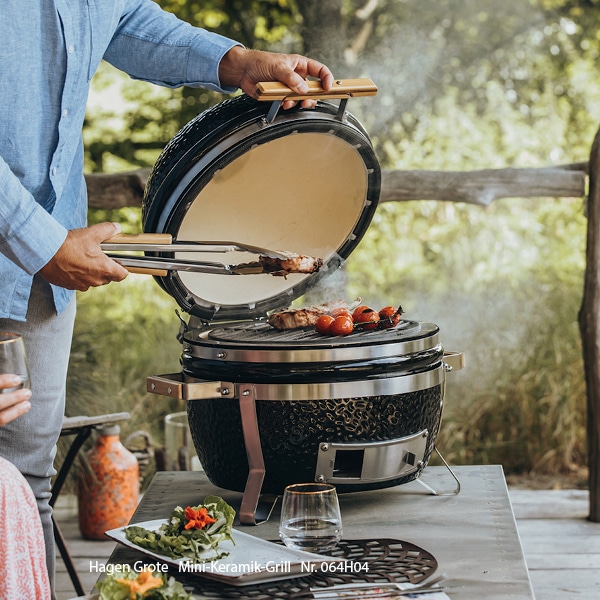In unserem Online-Shop finden Sie eine große Auswahl hochwertiger Grills. Inspiriert von japanischen Mushikamado Keramik-Öfen entstand unser Mini-Keramik-Grill. Er punktet mit gleichmäßiger Wärmespeicherung und perfekt reguliergarer Luftzufuhr. So erreicht er Innentemperaturen von 70-400 °C. Auch zum Backen von Pizza und Broten, zum schonenden Niedrigtemperaturgaren bei 80 °C sowie zum Smoken kann der Grill eingesetzt werden. Die zusätzlich erhältliche Feuerplatte macht ihn zum Plancha-Grill.