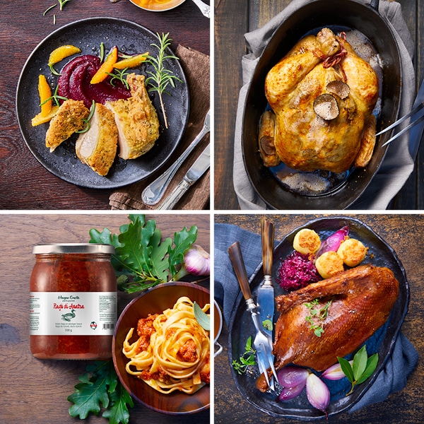 Ein besonderes Highlight für die Festtafel ist Label Rouge Kapaun. Diese traditionelle französische Spezialität stammt aus artgerechter Freilandhaltung mit langer Mastzeit und hohem Getreideanteil in der Fütterung. Das Fleisch ist außergewöhnlich aromatisch, saftig und fest in der Textur – perfekt für klassische Kapaun-Braten mit feiner Füllung. Probieren Sie doch einmal unser Rezept für einen köstlichen Kapaun-Weihnachtsbraten!
