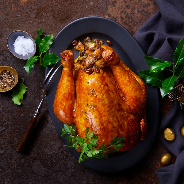 Eine elegante, bereits vorbereitete Variante ist der Kapaun-Braten Bûche de Chapon: Hier bildet die Haut den äußeren Mantel, während das zart ausgelöste Fleisch im Inneren spiralförmig geschichtet ist – ganz wie bei der klassischen Bûche de Noël (französischer Weihnachtskuchen in Baumstamm-Form). Gewürzt mit Piment d’Espelette, Meersalz und Pfeffer wird die Bûche vorgegart geliefert und muss nur noch im Ofen erwärmt werden – ein raffiniertes Festessen mit minimalem Aufwand und maximalem Geschmack.
