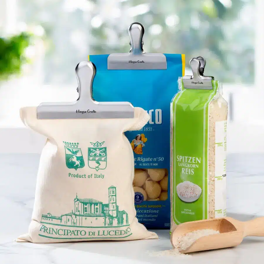 Ob Kaffee, Müsli oder Gewürze – geöffnete Tüten verlieren schnell an Frische. Mit diesen robusten Edelstahl-Clips bringen Sie Ordnung in Ihre Küche und bewahren den Geschmack Ihrer Lebensmittel zuverlässig. Die hochwertigen Verschluss-Clips schließen Beutel, Verpackungen und Tüten mit starker Federkraft – sicher, rutschfest und absolut dicht.