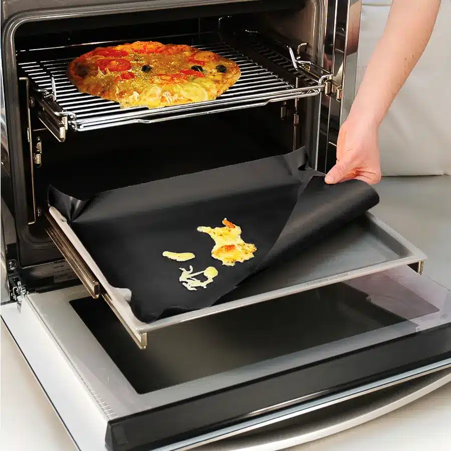 Unsere beidseitig antihaftbeschichtete Spezialmatte schützt Boden, Backbleche und Roste Ihres Backofens vor allen Verschmutzungen. Aufwendiges Säubern wird überflüssig. Auf der Matte haftet beim Backen und Braten nichts oder brennt an.