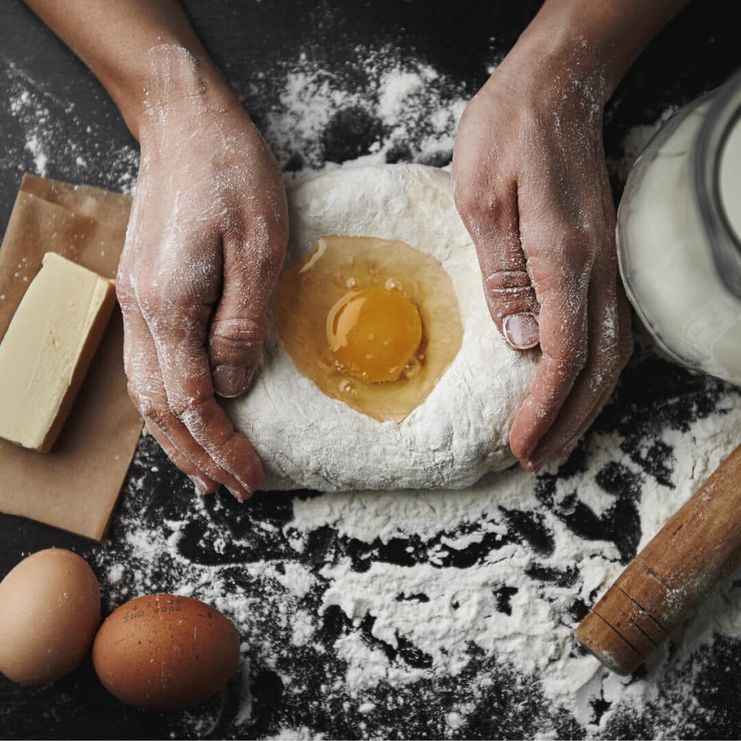 Lediglich vier Grundzutaten bilden die Basis der meisten Plätzchenteige: Eier, Butter, Zucker und Mehl. Achten Sie bei allen Zutaten – auch bei ergänzenden Beigaben wie gemahlenen Nüssen oder Gewürzen – auf Frische und Qualität. Verwenden Sie für Weihnachtsplätzchen, sofern im Rezept nicht anders angegeben, Weizenmehl Typ 405. Dieses besonders feine Mehl ist ideal für zartes Gebäck in der Weihnachtsbäckerei.