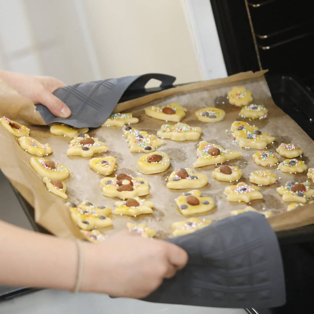 Damit Teig nicht an Ausstechformen haftet, bestäuben Sie die Formen vorab leicht mit Mehl.