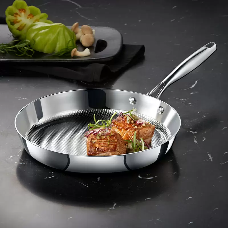 Ihr Geheimnis liegt in der thermischen Abstimmung verschiedener Metalle. Die äußere Bodenschicht aus induktionsfähigem Edelstahl bleibt selbst bei hoher Hitze absolut plan.
