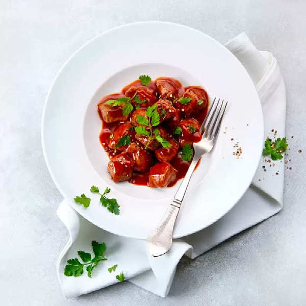 Aus besten frischen Zutaten wird dieser Klassiker der Gourmet Küche in unserer Genussmanufaktur für die bequeme und schnelle Zubereitung zu Hause gekocht. Fertig gegart braucht das Gericht nur kurz erwärmt werden.