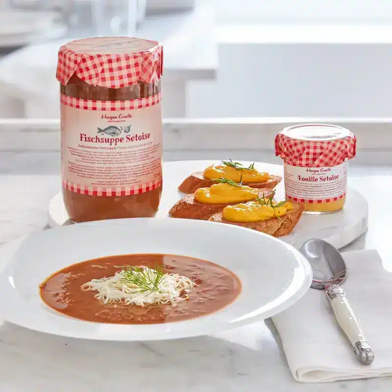In anspruchsvoller handwerklicher Fertigung produziert unsere Manufaktur im südfranzösischen Sète diese Fischsuppen-Spezialität und verleiht ihr dabei einen vorzüglichen Geschmack. Damit wir die einzigartige Qualität bewahren können, ist die Beibehaltung traditioneller Zubereitungen von entscheidender Bedeutung.