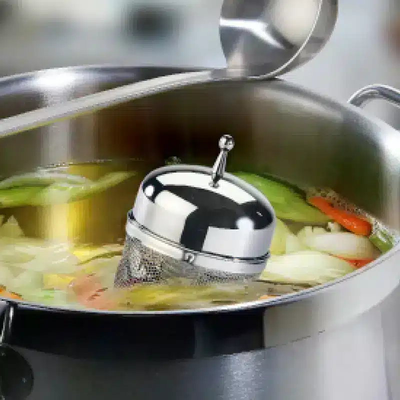 Kräuter und Gewürze im Bodensieb so lange in Saucen, Suppen, Ragouts schwimmen lassen, bis der gewünschte Geschmack erreicht ist. Auch heiße Getränke vom Tee bis zum Glühwein aromatisieren Sie nun genau dosiert, nicht zu viel und nicht zu wenig.