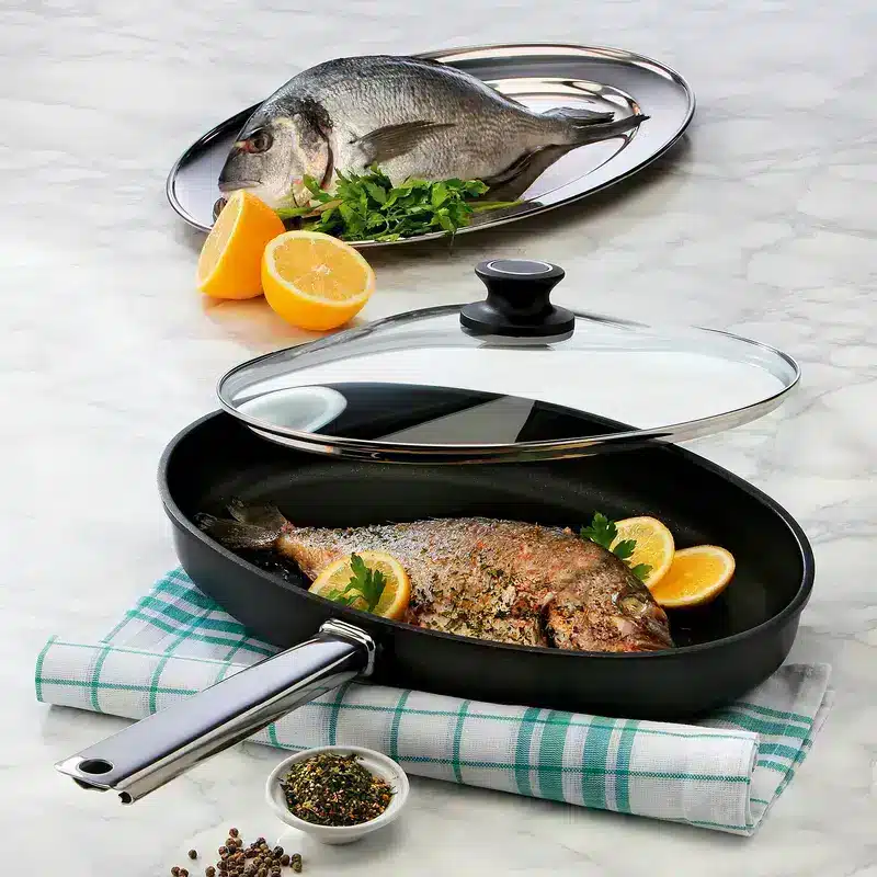Handgegossenes Aluminium mit optimal leitendem, bis zu 9 mm starken Boden verleihen der Spezialpfanne einzigartige Brateigenschaften. Durch die harte Innenbeschichtung und mehrere Schichten ist sie schnitt-, kratz- und abriebfest.