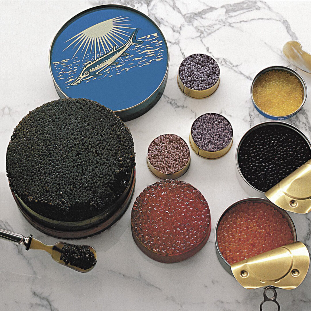 Klassischerweise findet man frischen Kaviar in einer innen beschichteten Stülpdeckel-Dose. Kenner und Liebhaber des „schwarzen Goldes“ erkennen beim Einkauf anhand der Deckelfarbe auf einen Blick, um welche Art von Kaviar es sich handelt: Bei Beluga ist er blau, bei Ossietra gelb und bei Sevruga rot. Pasteurisierter Kaviar ist hingegen meist im Glas erhältlich. Obwohl sich seine Qualität in den letzten Jahren stark verbessert hat, wird er von Experten in aller Regel als minderwertig abgelehnt. Einem nicht mehr frischen Kaviar ist ein gut pasteurisiertes Produkt jedoch vorzuziehen.