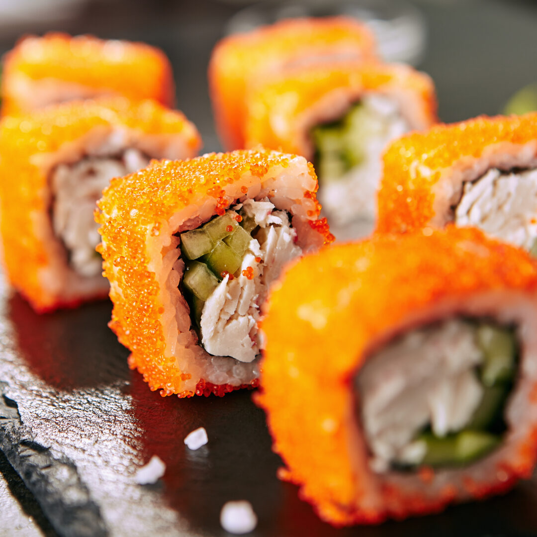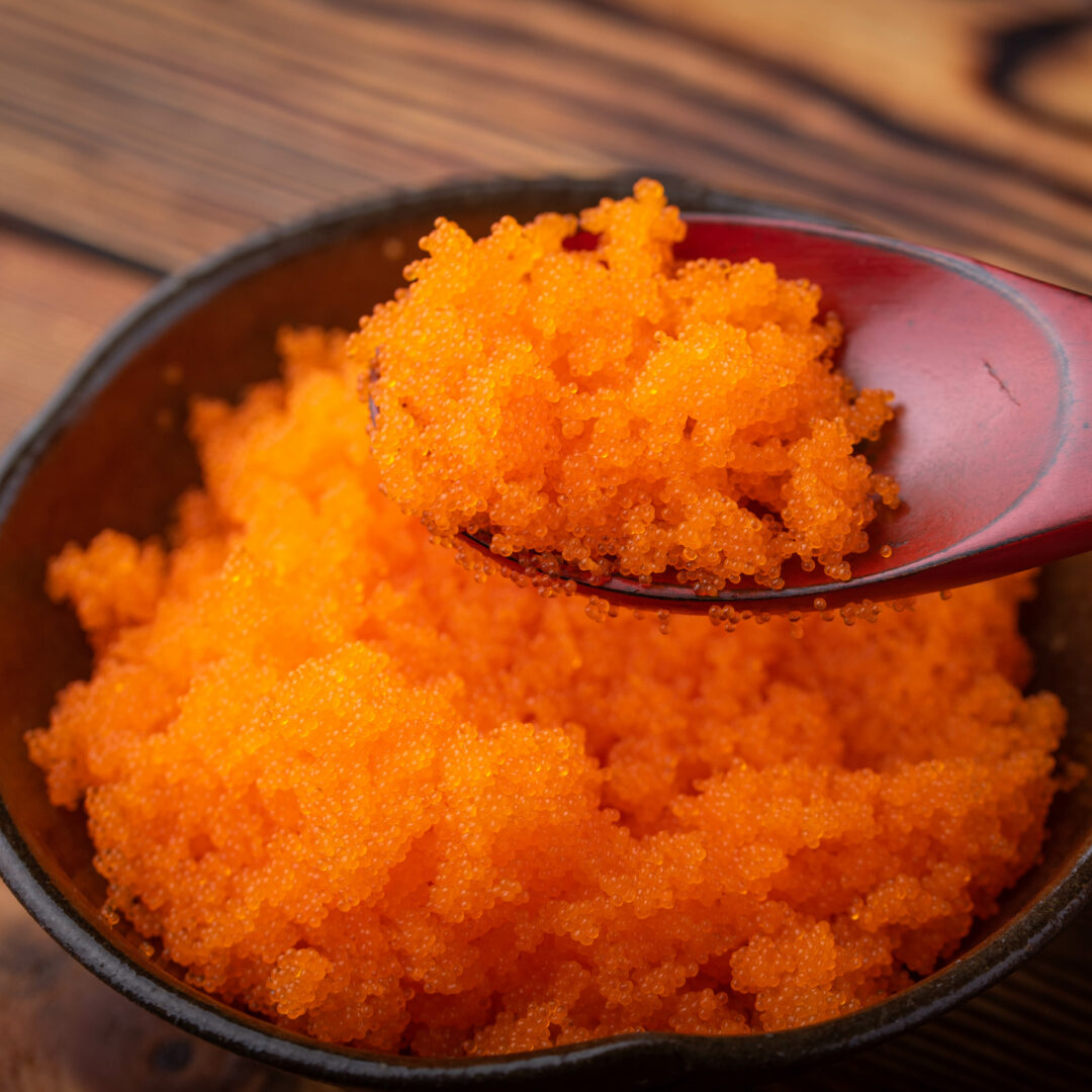 Massago, auch Masago oder Isländischer Kaviar, stammt vom Kapelan, einem kleinen Fisch aus der Familie der Stinte. Im Englischen Capelin genannt findet man ihn im Handel oftmals auch als Capelinrogen oder Capelin-Kaviar. Die orangeroten Körner mit einem Durchmesser von unter 0,5 mm kennt man aus der japanischen Küche, in der sie als Dekoration für Sushi verwendet werden.