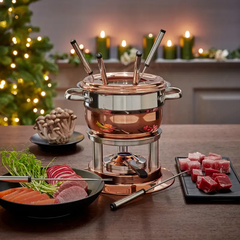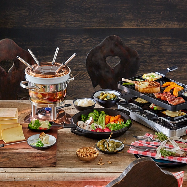Aus dem Schweizer Alpenraum stammt das allseits beliebte Käsefondue, das seit Langem als Nationalgericht des Landes gilt. Die Käsemischung, die traditionell aus Vacherin und Greyerzer besteht (50/50), wird mit Weißwein und etwas Kirschwasser verfeinert. Je nach Region werden aber auch andere Käsesorten, wie etwa Comté oder Beaufort, verwendet oder beigemischt. Bereits fertig vorbereitet ist unsere köstliche Fonduemischung mit vollmundigem Greyerzer und würzigem Fribourg Vacherin, die nach kurzem Erhitzen direkt genossen werden kann. Traditionell verwendet man für Fondue einen Keramiktopf, den sogenannten Caquelon. An langen Fonduegabeln werden Brot, Kartoffeln, Gemüse und Obst in die Käsemischung getaucht. Mehr zum Thema erfahren Sie in unserem Magazinartikel: Festliches Fondue: Gemeinsam genießen. Probieren Sie doch auch einmal unser Rezept für Schweizer Käsefondue.