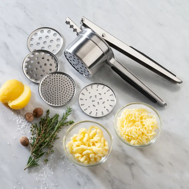 Edelstahl-Kartoffelpresse: Kraftsparend Kartoffelbrei, Spätzle, Spaghetti-Eis pressen