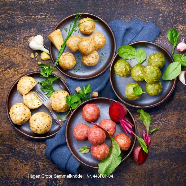 Eine besondere Spezialität und optisch wie kulinarisch ein Highlight sind die bunten Knödel von Österreichs kreativstem Küchenchef Werner Dilly. In den Sorten Natur, Rote Bete, Spinat und Bergkas entstehen sie aus frischen, regionalen Zutaten. Direkt tiefgekühlt in kochendes Salzwasser gegeben und 15 Minuten ziehen gelassen ist diese sensationelle Beilage für feine Gerichte servierfertig.
