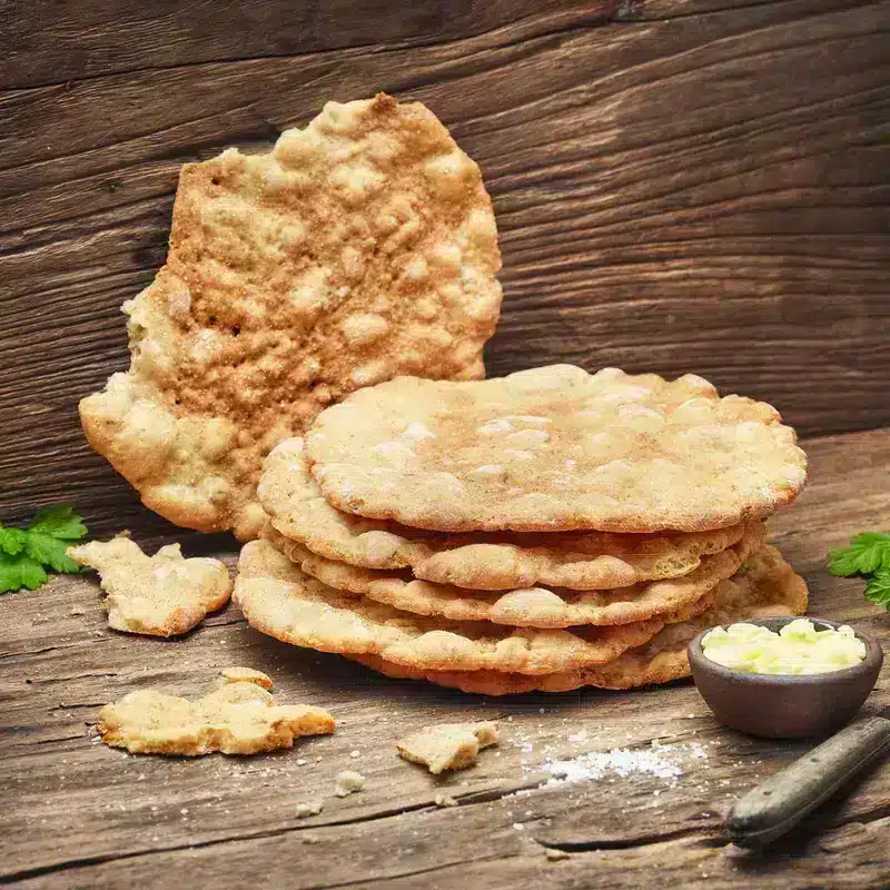 Pikanter Kümmel und würzige Fenchelsamen prägen seinen charakteristischen Geschmack. Aufgrund langer Haltbarkeit sind die knusprigen Roggen-Fladenbrote seit Jahrhunderten fester Bestandteil der Alpenküche.