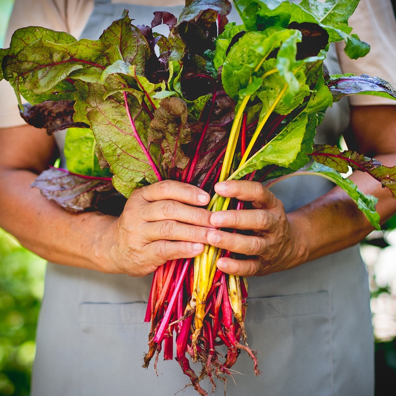 Mangold gibt es zwar während des ganzen Jahres, aber die Pflanze ist absolut winterhart und in der kalten Jahreshälfte daher ein willkommenes frisches Gemüse. Neben der häufiger angebotenen Sorte mit weißen Stielen ist die Varietät mit roten Stielen durch ihr kräftigeres Aroma nicht nur optisch für die Küche interessant. Stiele und Blätter werden gleichermaßen verwendet. Gekocht, gedämpft oder gedünstet lassen sie sich vielfältig zubereiten. Unverzichtbar ist Mangold in einigen mediterranen Gerichten wie der herzhaften italienischen Ostertorte “Torta di Pasqua” mit Spinat und Eiern in Blätterteig. Im Fischauflauf “Pecado a la Mallorquina” geht Mangold eine wunderbare Verbindung mit Dorade, Rosinen, Pinienkernen und Tomaten ein. Ausgezeichnet eignen sich Blätter und Stiele für Frittatas, Gemüsebeilagen oder Suppen.